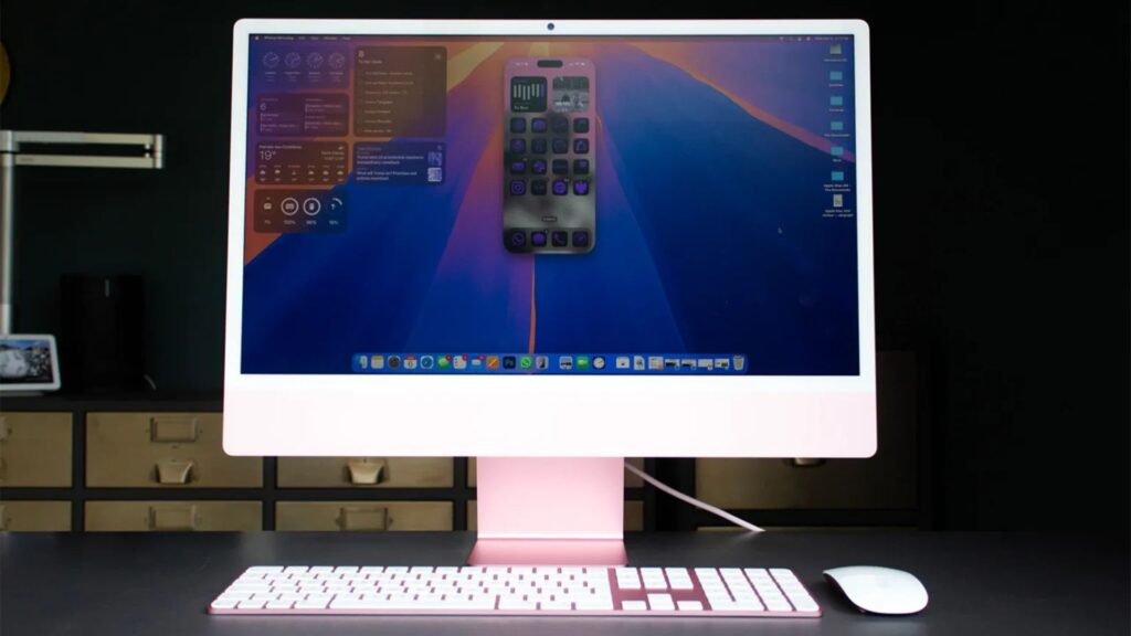 MacBook Pro (có sẵn ở kích thước màn hình 14 inch và 16 inch) và Mac mini tránh một loạt các tùy chọn màu sắc, thay vào đó là kim loại trần và lớp hoàn thiện màu xám hoặc bạc. Nhưng iMac giống iPhone hơn ở khía cạnh này, loại bỏ cách tiếp cận nhẹ nhàng đó ra khỏi cửa sổ với màu sắc của cửa hàng kẹo và các phụ kiện cùng màu, tạo nên sự tương phản rõ nét với phần còn lại của gia đình Mac.