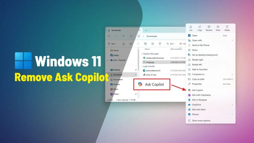 Phạm Thảo 0 Windows 12 Th10 2025 12/10/2025 Hướng dẫn cách xóa Ask Copilot khỏi menu ngữ cảnh File Explorer trên Windows 11 Trên Windows 11, Microsoft tiếp tục tích hợp Copilot vào khắp desktop và các ứng dụng. Hiện tại, khi bạn nhấp chuột phải vào một tệp hình ảnh hoặc tài... Đọc tiếp